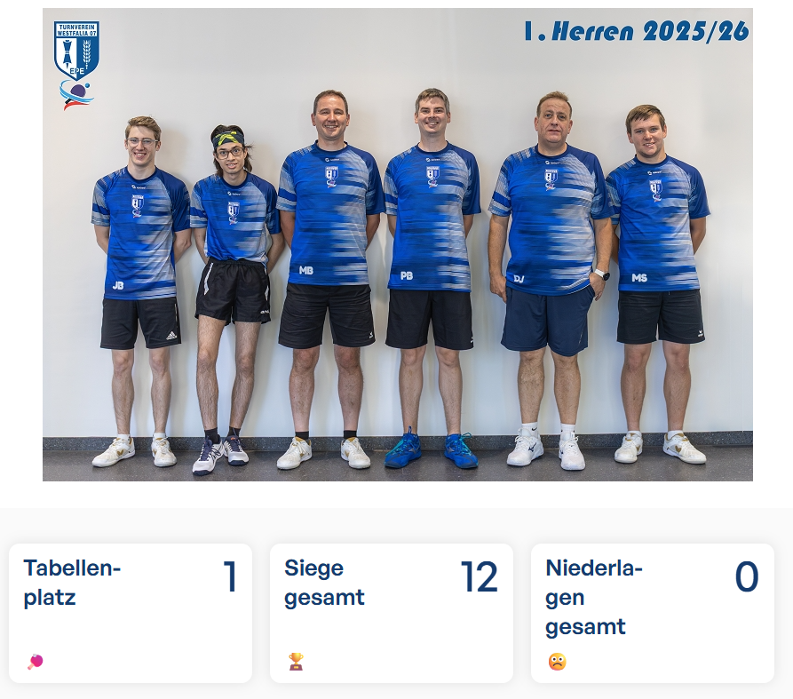 Die 1. Mannschaft des TV Westfalia 07 Epe beendet die Hinrunde in der Bezirksliga mit 9 Siegen aus 9 Spielen als Tabellenführer. Auch als Aufsteiger wusste man um die Qualitäten und wollte oben mitspielen, aber die erzielten Ergebnisse übertrafen die Erwartungen. Die Mannschaft möchte beim Heimspiel gegen Stadtlohn am 11. Januar nahtlos an ihre Leistung anknüpfen und den Vorsprung so lange wie möglich aufrechterhalten oder sogar vergrößern.